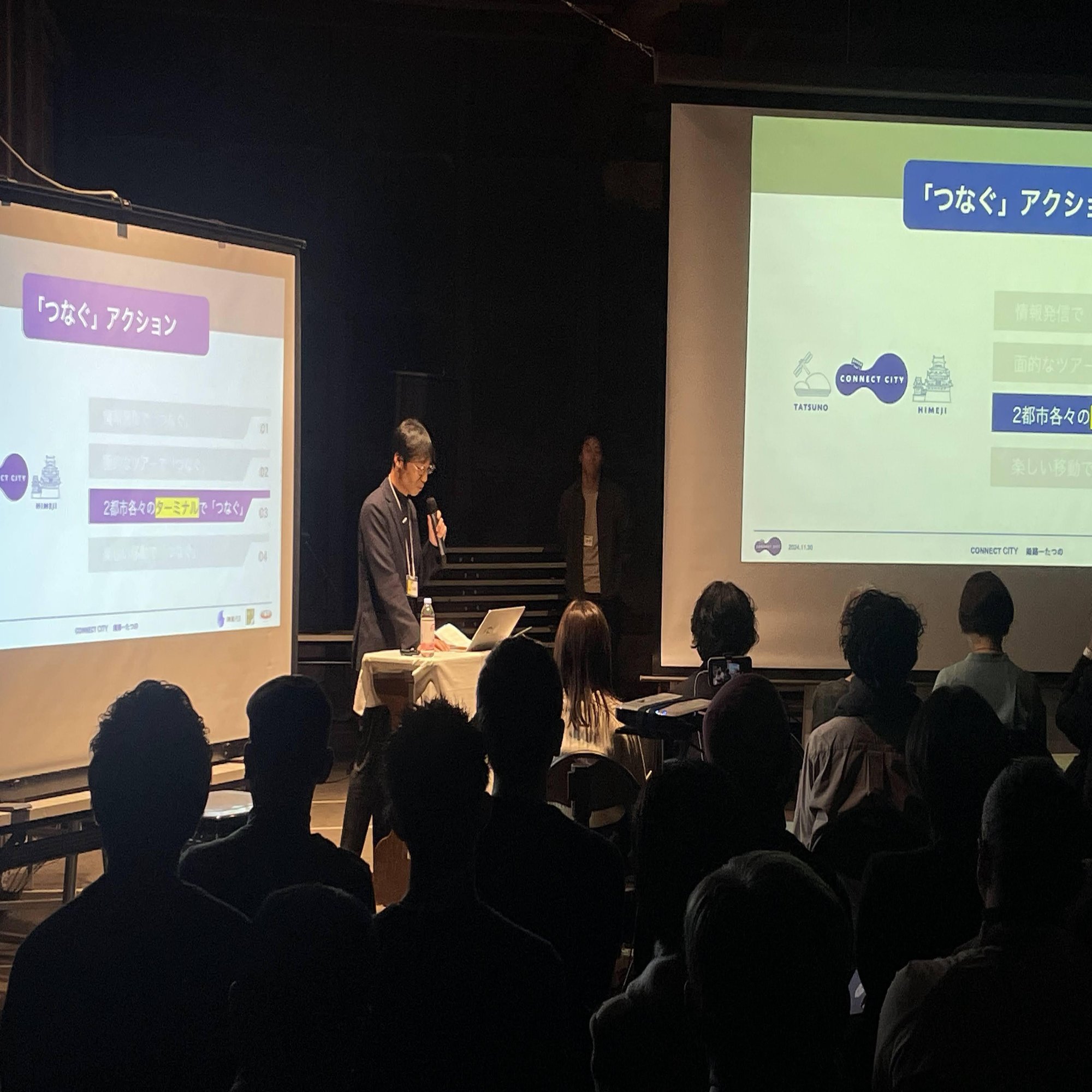 2つの都市をつなぎ、さらなるエリア価値向上を目指す新たな取り組み「Connect City」が、兵庫県たつの市と姫路市を舞台にスタートします。そのキックオフの場として11月30日に、たつの市のゐの劇場にて「たつの×姫路みらい会議」を開催しました。この記事ではconnect cityの狙いである「いかに民間企業同士が連携し地域に投資することで持続的なまちづくりに繋げられるか」についてや、会議当日のプレゼンやトークセッションの様子についてご紹介します。