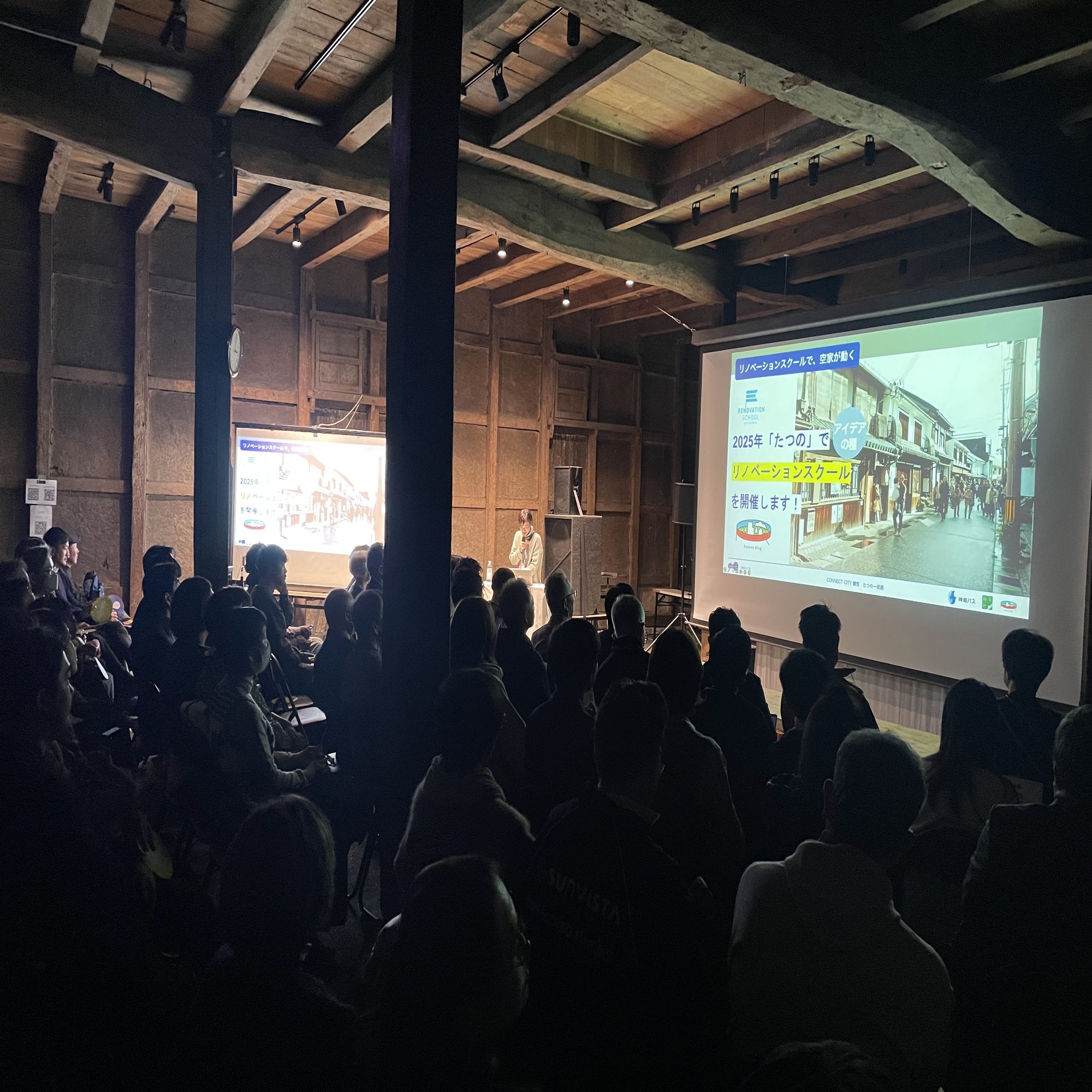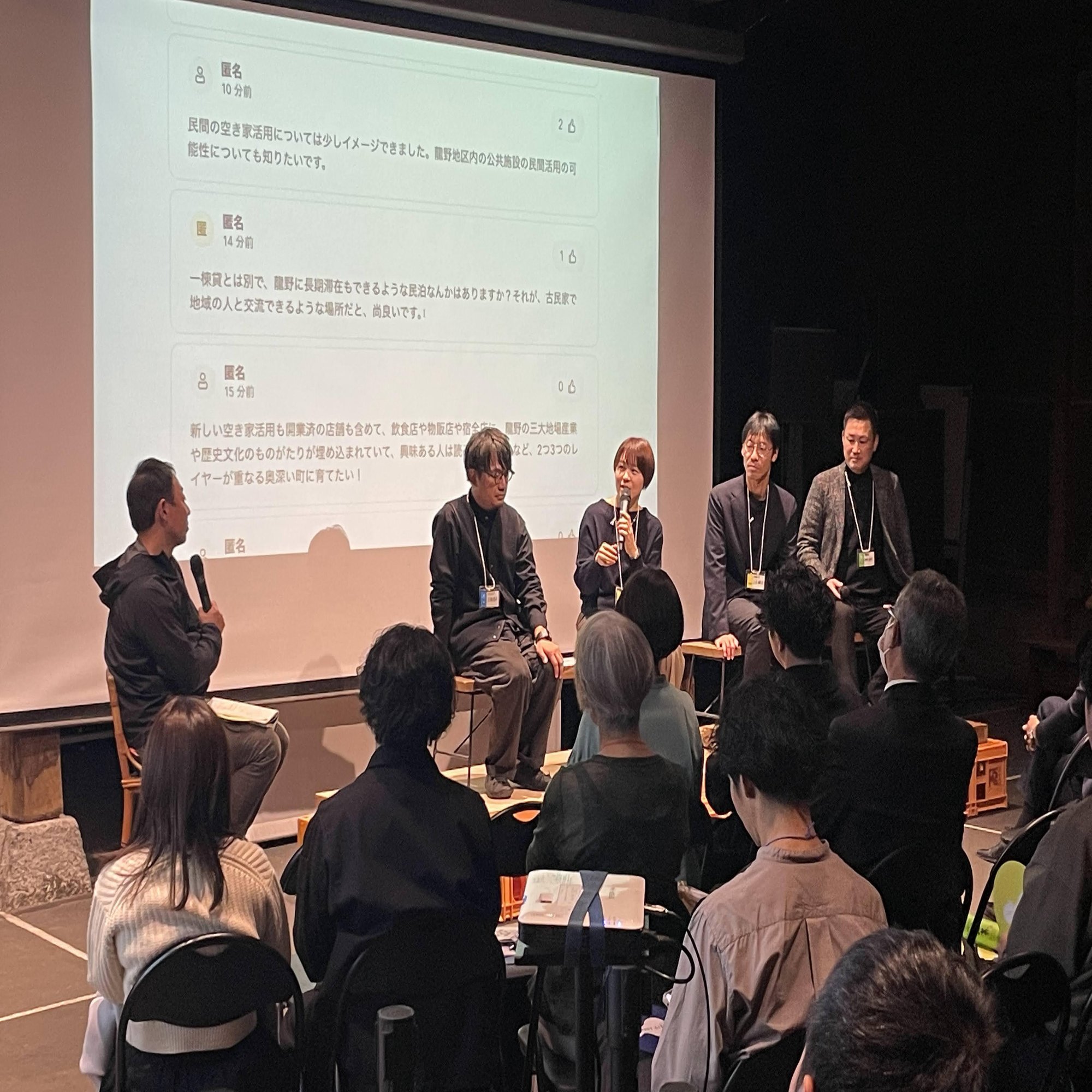 たつのと姫路でのConnect Cityでは3つの企業が連携して様々なプロジェクトを推進することで2都市の価値向上を目指します。交通事業者として地域との共創を進めている「神姫バス」。たつの市の重伝建エリアを中心としたローカルディベロッパーの「緑葉社」。そして全国のエリアリノベーション推進を支援している「リノベリング」がそれぞれの強みを掛け合わせたプロジェクトを新たに立ち上げます。みらい会議では各社からのプレゼンの後、姫路市のリノベーションスクールでスクールマスターを務めていただいた西村浩さんを交えて、会場からの声を交えたトークセッションを行いました。