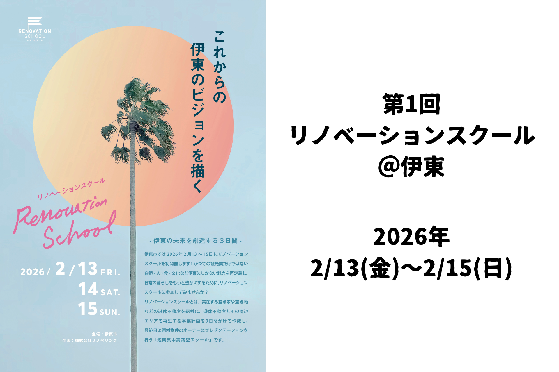 【受講生募集中】「第1回リノベーションスクール@伊東」2月13日(金)〜2月15日(日)に開催決定!