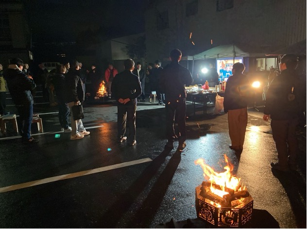 そうしたプロセスを通じて実施したワークショップでは、参加者同士が自然に言葉を交わし、つながりが生まれるような場の雰囲気に力を注ぎました。例えば、地元に新設されたクリニックのキッズスペースを会場にして膝を突き合わせて議論できる場をつくったり、キャンプギアを販売する地元企業の協力を得て、商店街の駐車場スペースを活用し、焚き火を囲んだ交流会を開いたりしました。そのプロセス自体が民間プレーヤーの力を活かし、知る機会になるとともに、会議室では実現できない交流の場を設けることができました。
